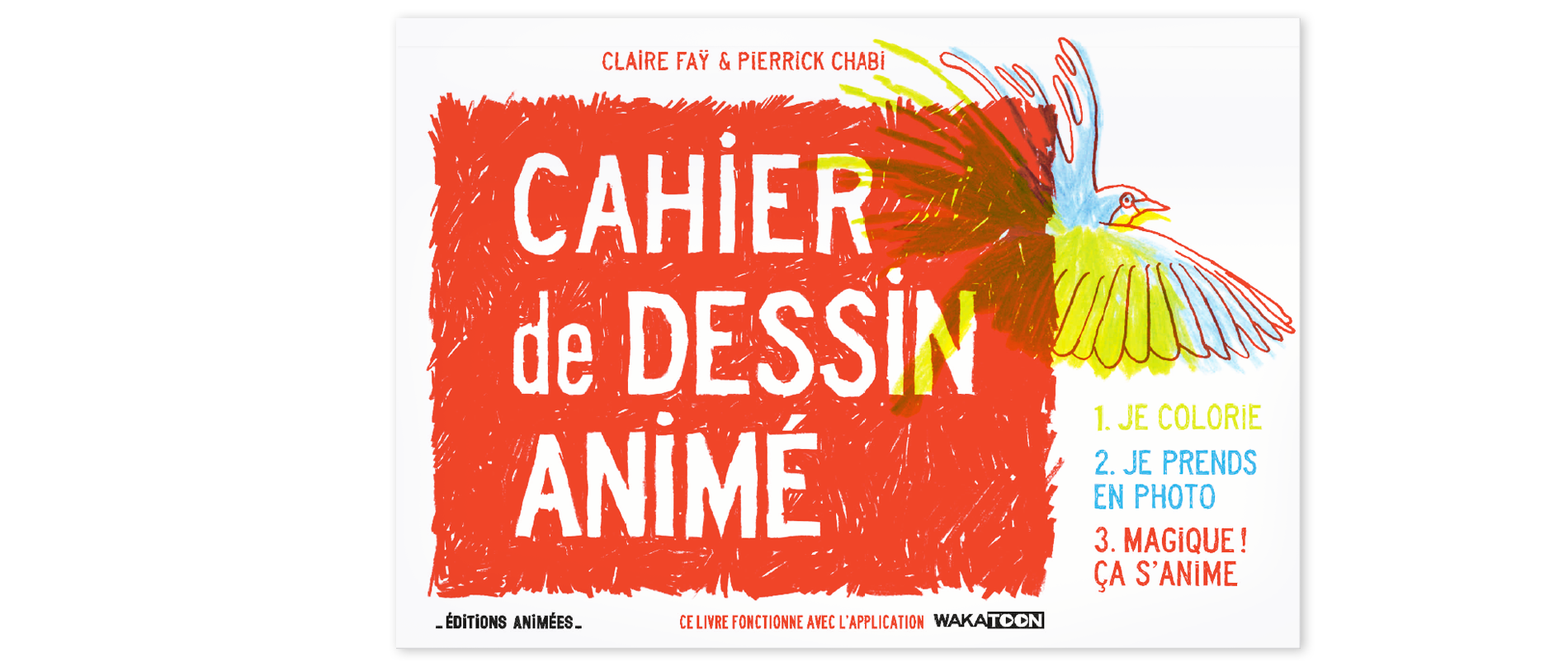 Le Cahier de Dessin Animé est le tout premier livre de coloriage animé. Il a été publié en 2014 et fonctionne avec l’application Wakatoon.