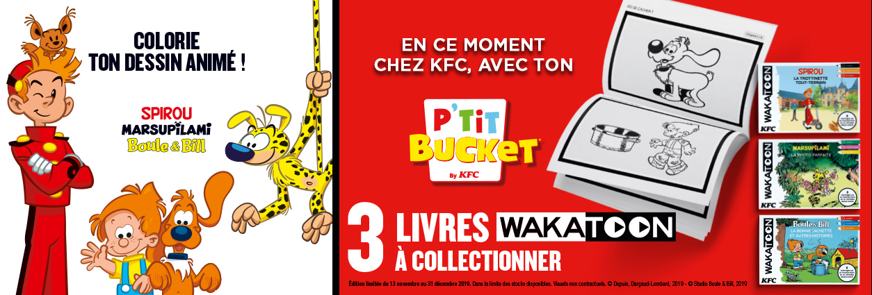 KFC a pris la décision de distribuer des livrets de coloriage interactifs Wakatoon aux enfants pour l’achat d’un menu P'tit Bucket.