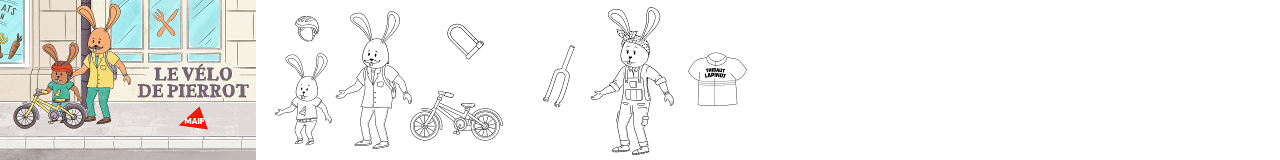 Le coloriage utilisé reste celui sur-mesure du Petit Pierrot et de son vélo accidenté.